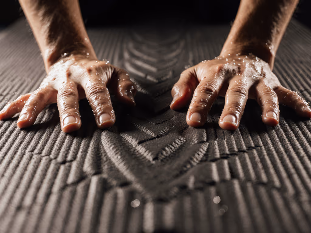 - Sweat simulation test: Dampen palms, press firmly onto sample mats. Does traction increase or decrease?